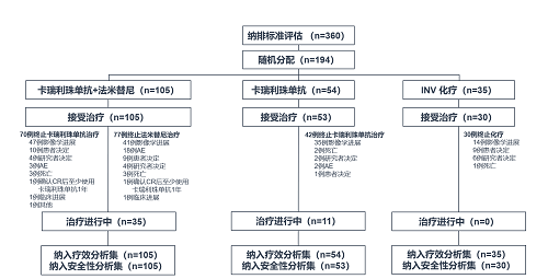 自2021年4月5日至2022年10月19日,总计筛选360例患者,共纳入194例患者(图2),三组基线特征平衡(表1):